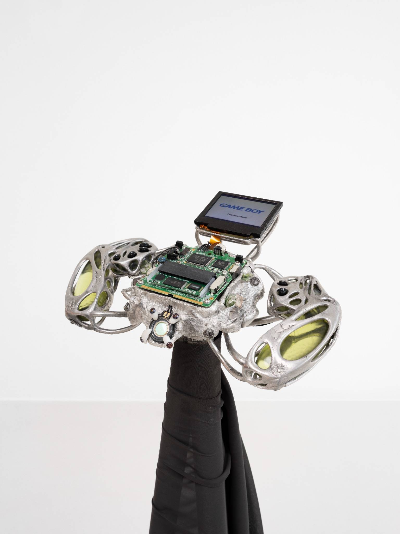 Casted Aluminium, casted pewter, 3D printed resin, Gameboy advance SP hardware, various electronic hardware